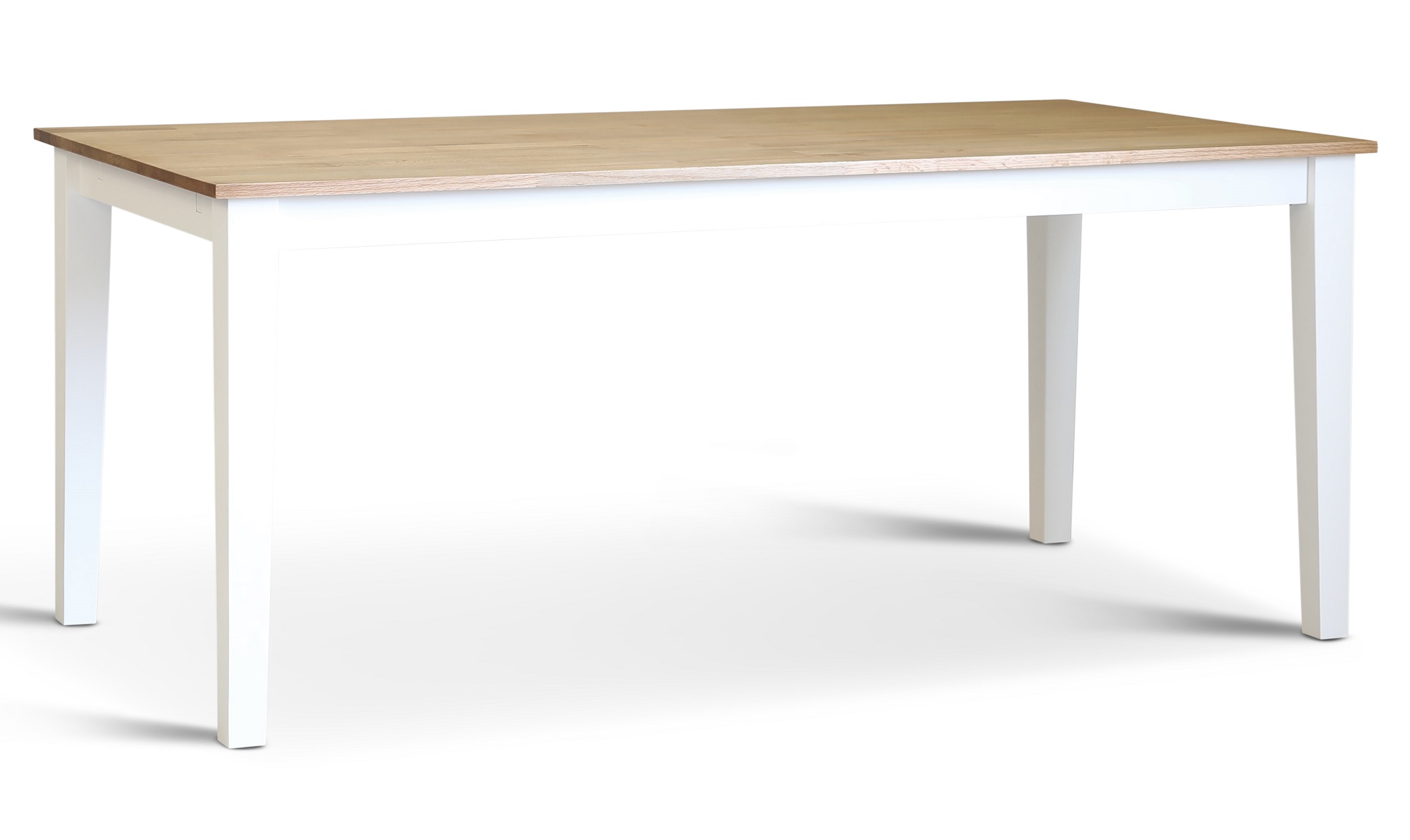 Dalsland matgrupp: Matbord i vit / ek med 6 st Tuva stolar i blå sammet