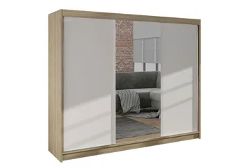 Cyria Garderob med Spegel 200x215 cm, Brun/Vit
