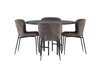 Lanzo Matgrupp 120 cm Rund med 4 Evelina stolar, Svart