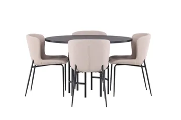 Lanzo Matgrupp 120 cm Rund med 4 Modesto stolar, Beige