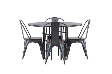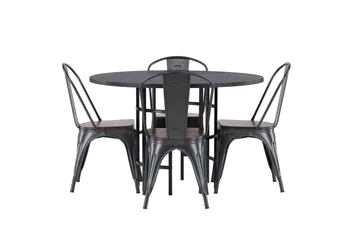 Lanzo Matgrupp 120 cm Rund med 4 Stella stolar, Svart