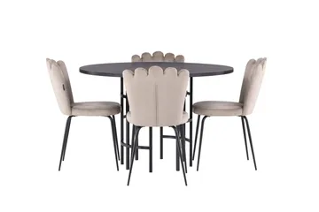 Lanzo Matgrupp 120 cm Rund med 4 Rosie stolar, Beige