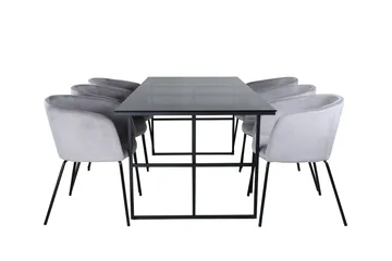 Jimmy Matgrupp 195 cm Rektangulär med 6 Petra stolar, Svart