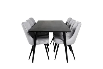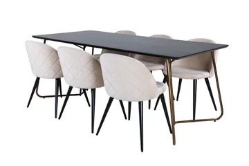 Polar Matgrupp 180 cm Rektangulär med 6 Velvet Deluxe stolar, Svart