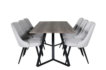 Marina Matgrupp 180 cm Rektangulär med 6 Velvet Deluxe stolar, Ljusgrå