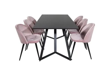 Dipp Matgrupp 180 cm Rektangulär med 6 Velvet Deluxe stolar, Svart