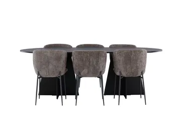 Isolde Matgrupp 180 cm Oval med 4 Lilja stolar, Svart