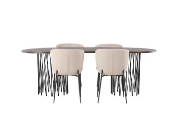 Andy Matgrupp 180 cm Oval med 4 Rosie stolar, Beige