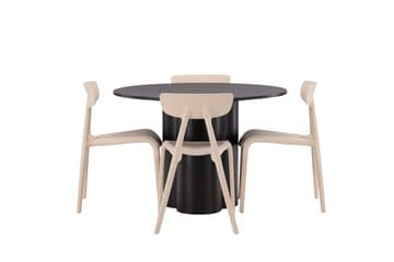 Matilda Matgrupp 130 cm Rund med 4 Yesterday Stolar, Svart