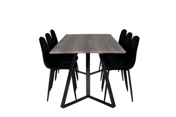 Dipp Matgrupp 180 cm Rektangulär med 6 Velvet stolar, Svart
