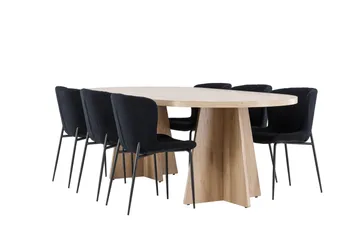 Bootcut Matgrupp 230 cm Rektangulär med 6 Night stolar, Whitewash/Svart