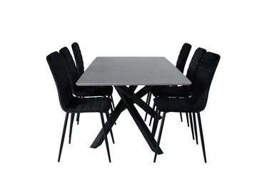 Astrid Matgrupp 200 cm Rektangulär med 6 Evelina stolar, Svart