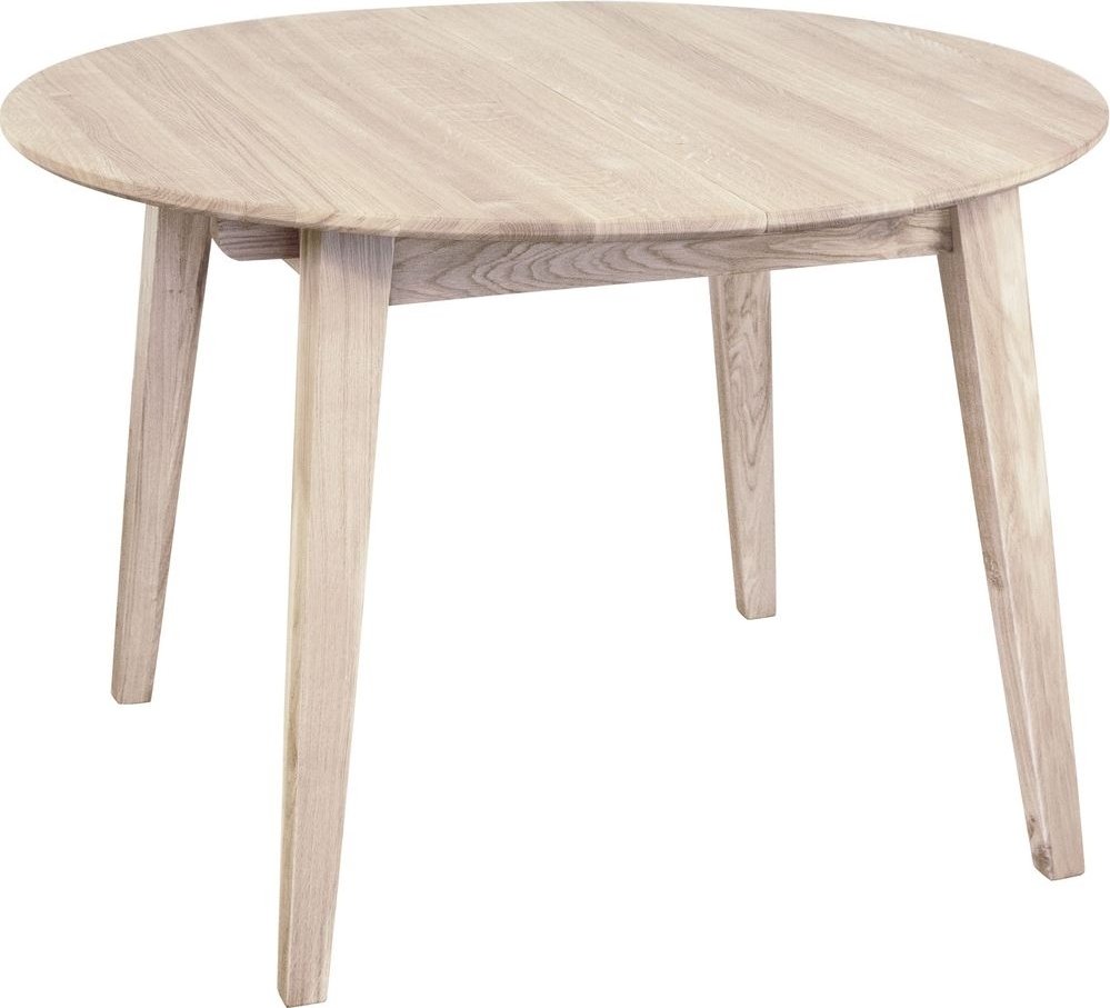 Genova matgrupp bestående av ett runt/ovalt matbord i vitpigmenterad ek som praktiskt och smidigt kan förlängas från 110 cm till 160 cm.