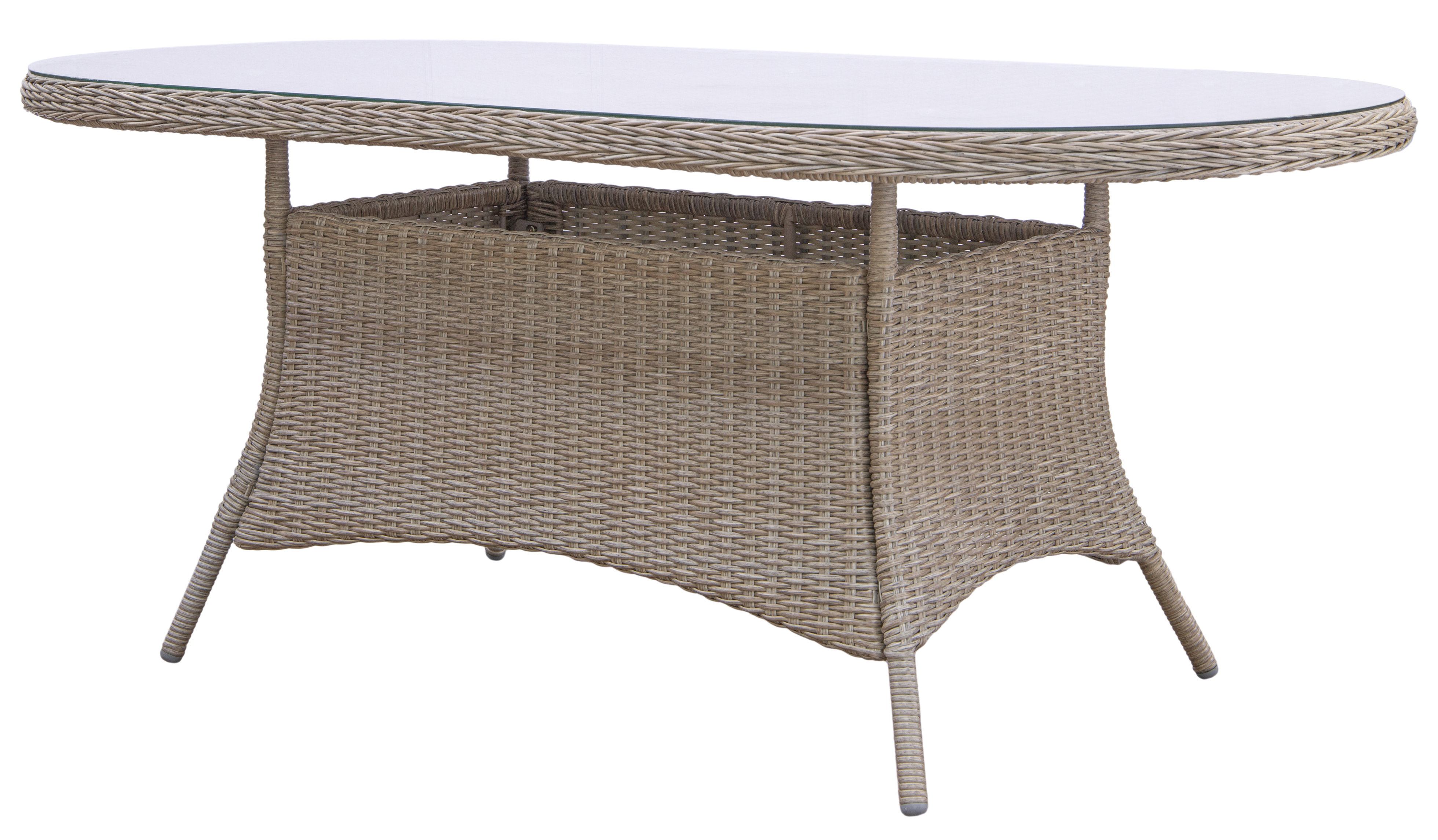 Skapa en trivsam plats för långa måltider och avkoppling utomhus med den här matgruppen i naturfärgad konstrotting. Bordet från Menton-serien har en bordsskiva i tempererat glas som ger en lättskött yta med plats för sex personer. De tillhörande Mercury-fåtöljerna har en klassisk design med välvd rygg och vadderad vit dyna som ger både stöd och komfort. Perfekt för både uterum och uteplats.