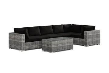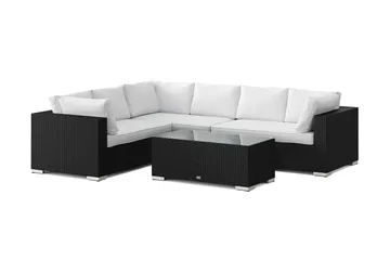 Bahamas L-formad utesoffa höger, 6-sits med bord, Svart