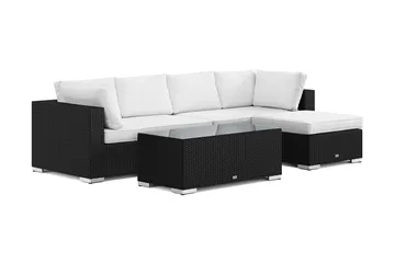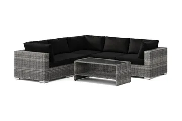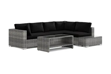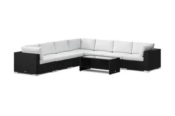 Bahamas L-formad utesoffa vänster, 6-sits med bord, Svart