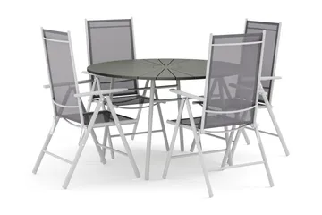 Tunis utomhus rund matgrupp 120 cm med 4 Jenny matstolar, Vit/Grå