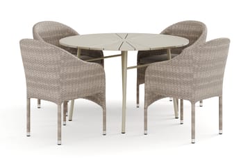 Thor utomhus rund matgrupp 140 cm med 4 Thor Light utefåtöljer, Beige